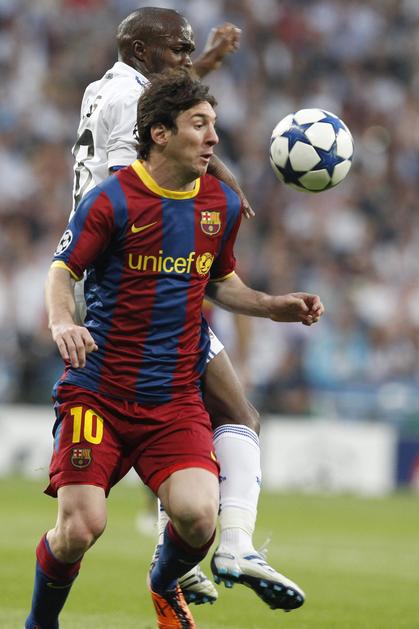 Messi tudi tokrat ni imel veliko prostora, a dvakrat je le uspel uiti obrambi Reala.