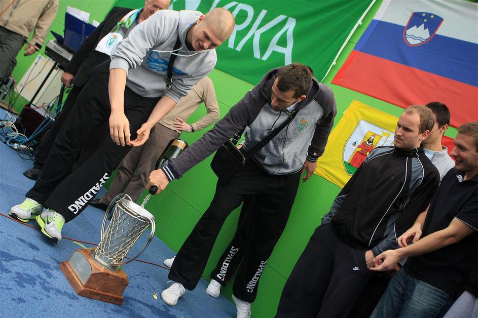 Poškodovani Simon Petrov bo s pokalom v rokah lažje pozabil na bolečine.