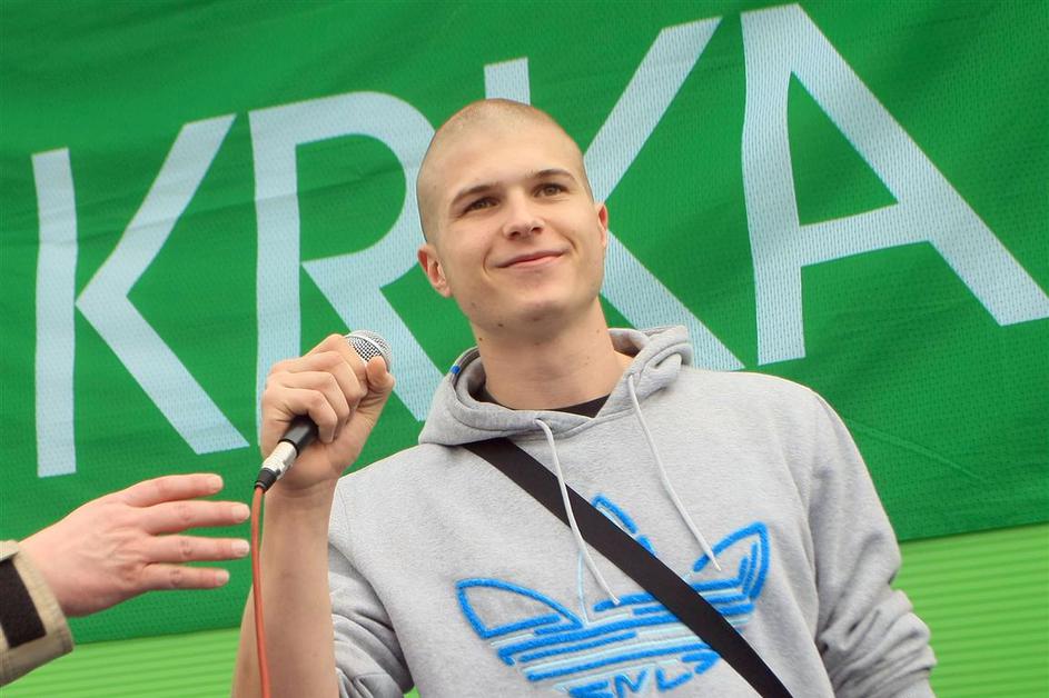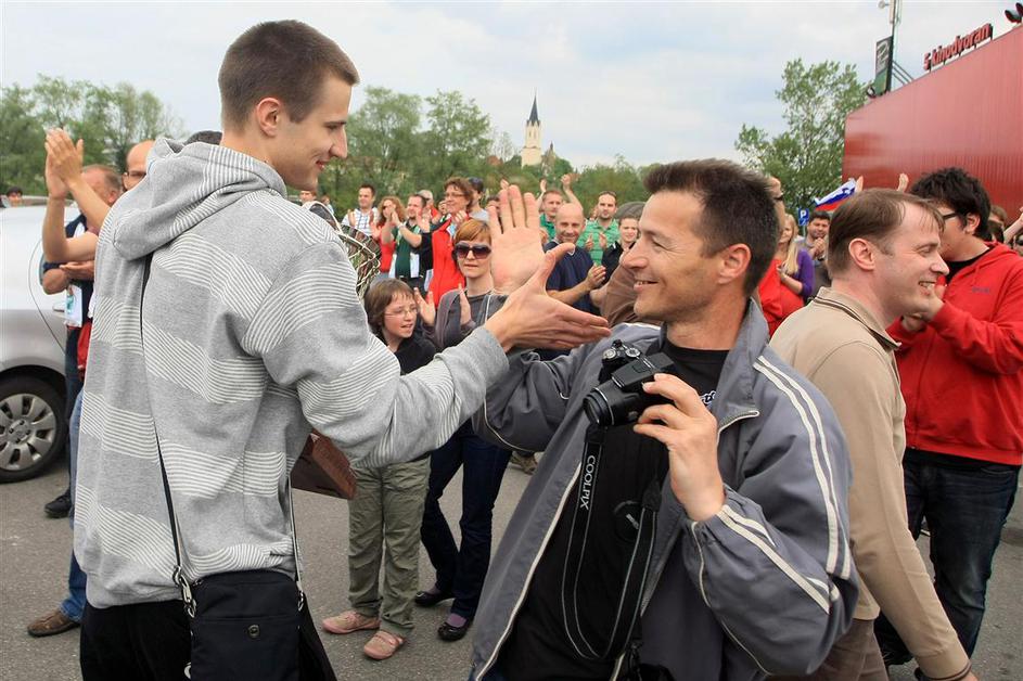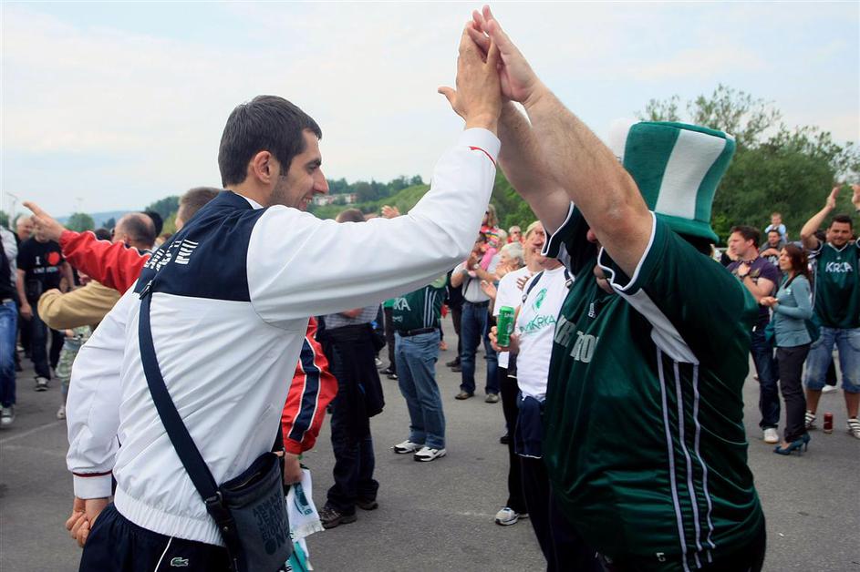 Matej Rojc z navijači.
