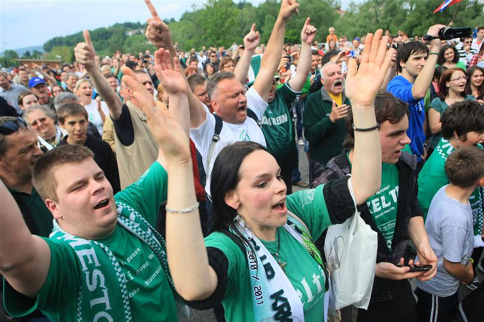 Novo mesto slavi svoje junake. Košarkarji Krke so na Dolenjsko pripeljali pokal EuroChallenge.