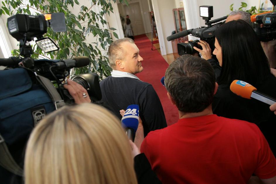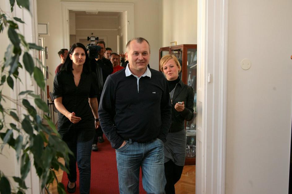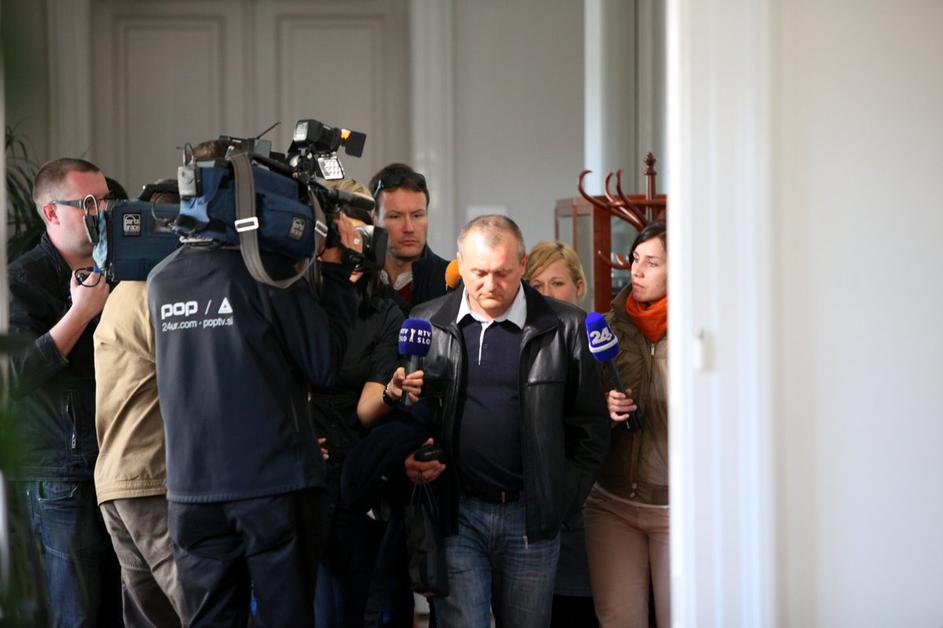 Po zaključeni preiskavi na občini je mariborski župan Kangler v spremstvu kriminalistov zapustil pro