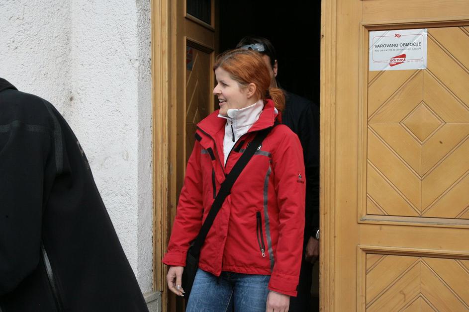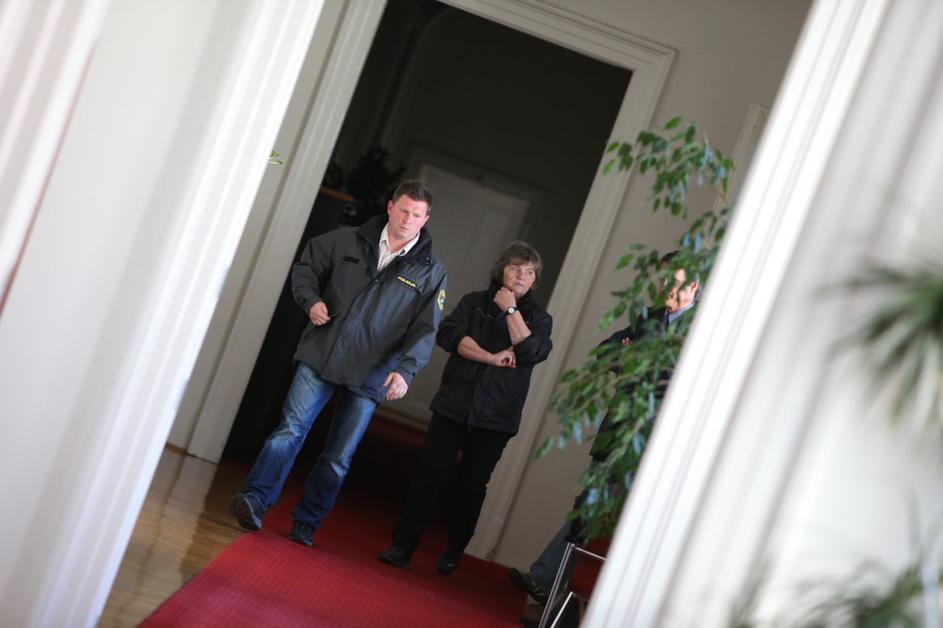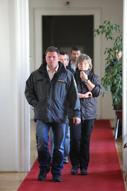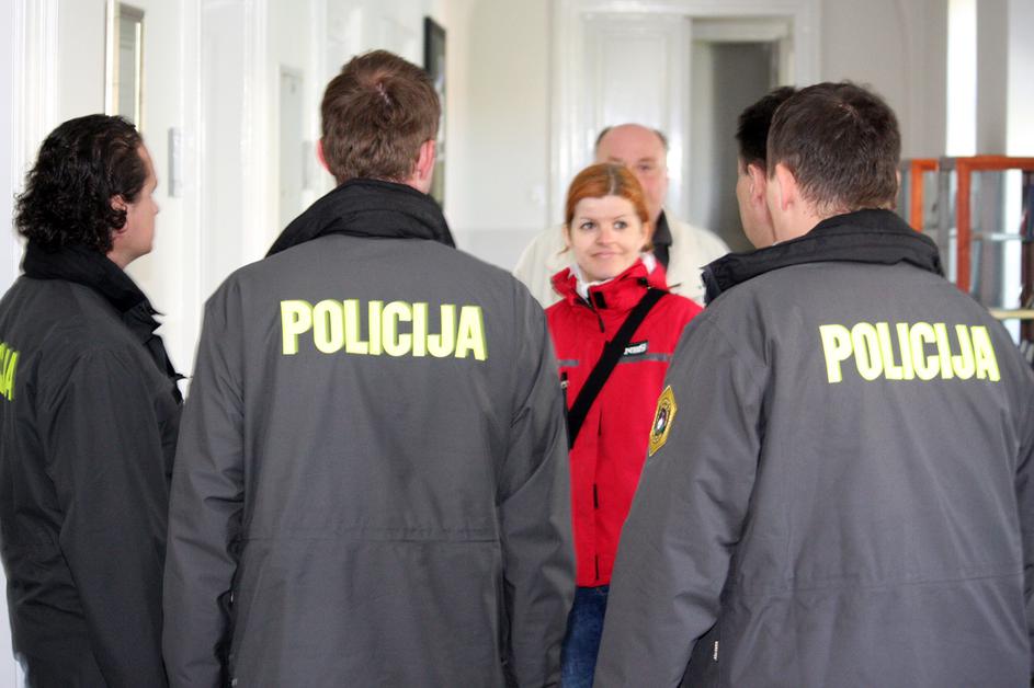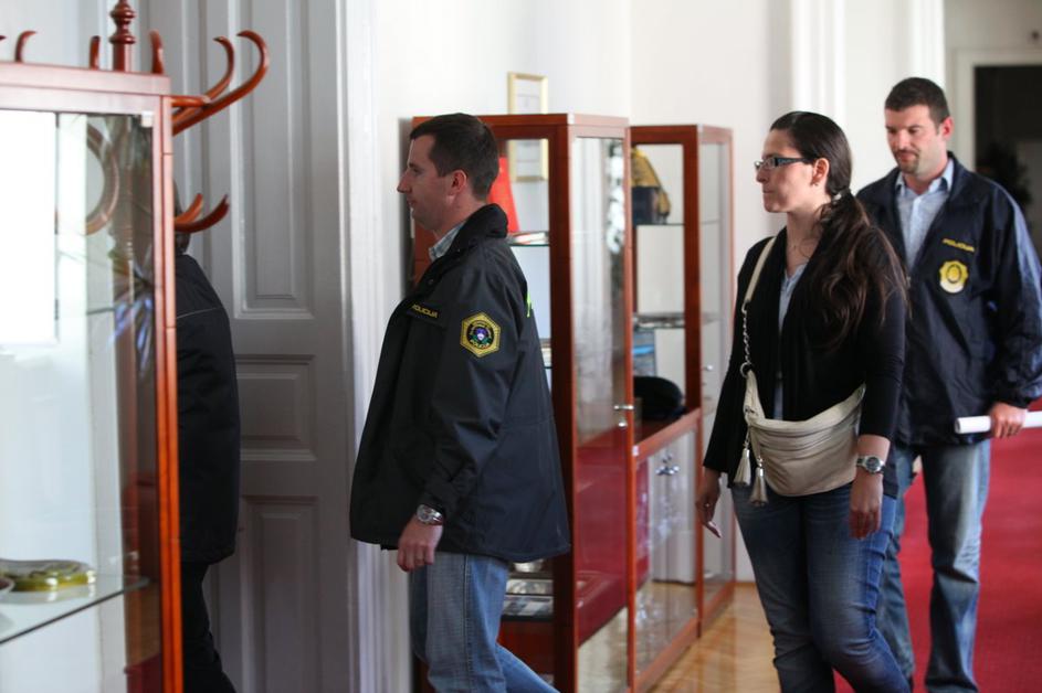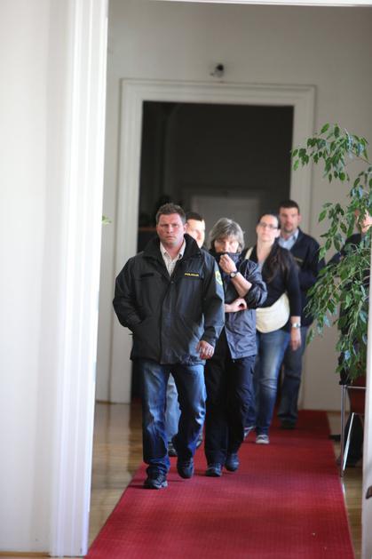 Milica Simonič Steiner je v spremstvu kriminalistov zapustila stavbo občine Maribor.