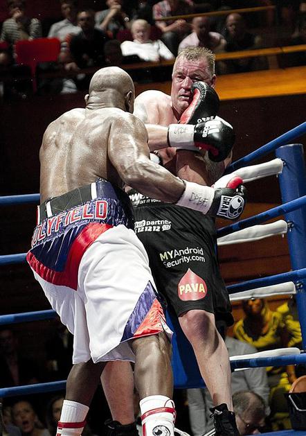 Američan Evander Holyfield, 48-letnik, in 46-letni Danec Brian Nilsen sta se v Köbenhavnu pomerila v Žurnal24