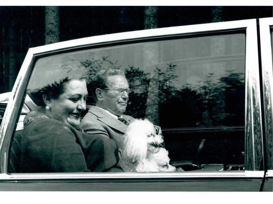 Jovanka in Tito v predsedniški limuzini.