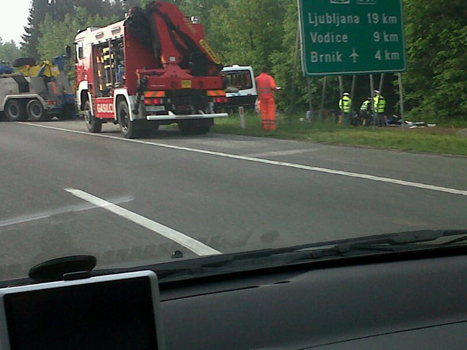 Nesreča avtobusa na gorenjski avtocesti.