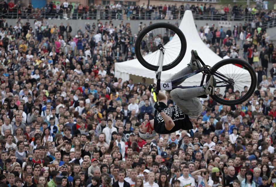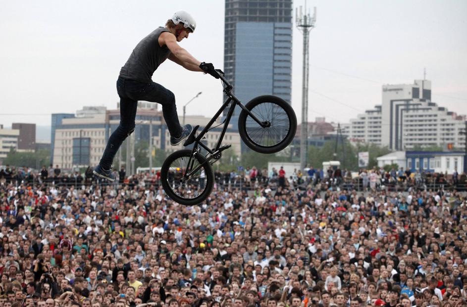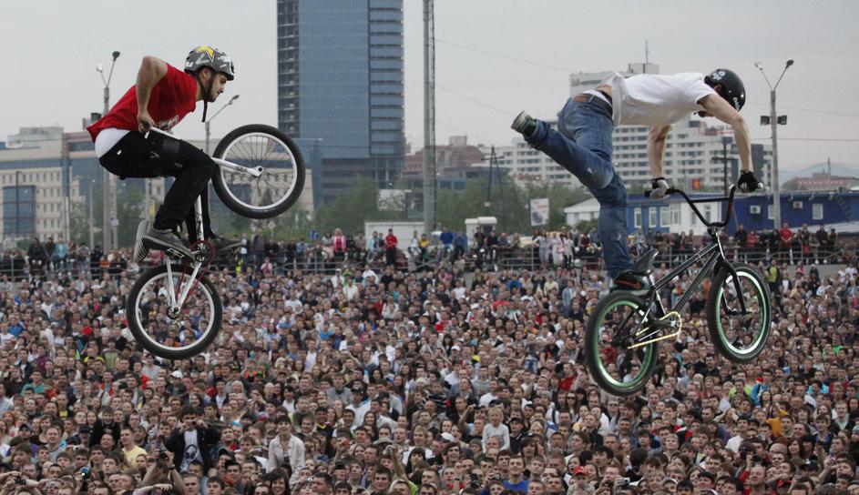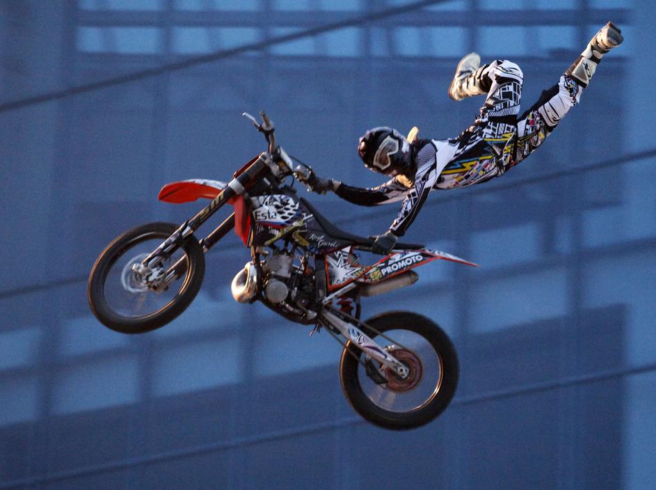 Na drugem koncu Evrope, v sibirskem mestu Krasnoyarsk pa so gledalci uživali na adrenalinski motocik