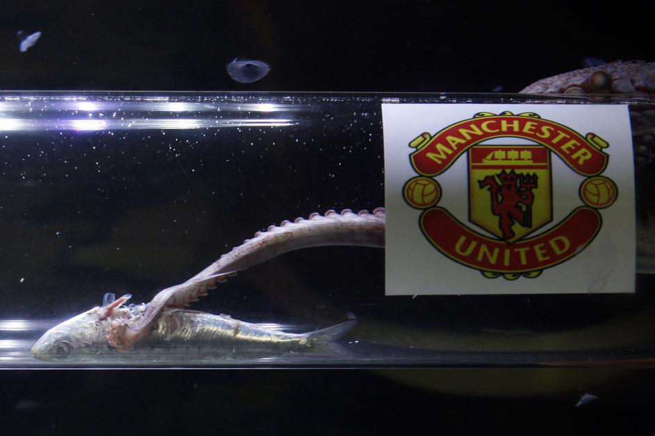 Hobotnica Iker je izbrala Manchester United. Vraževerni navijači Barçe so lahko zaskrbljeni ...