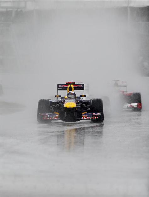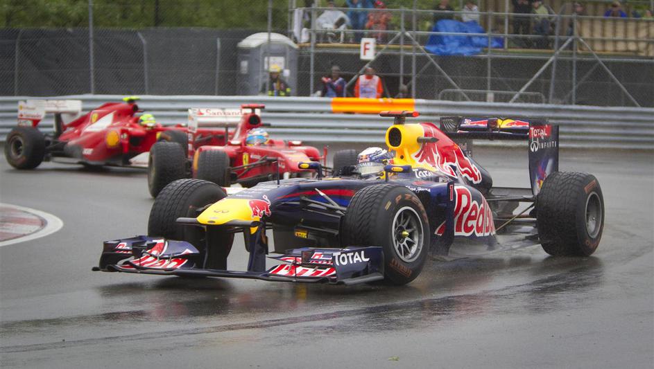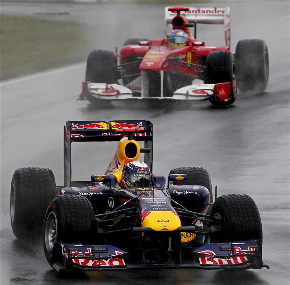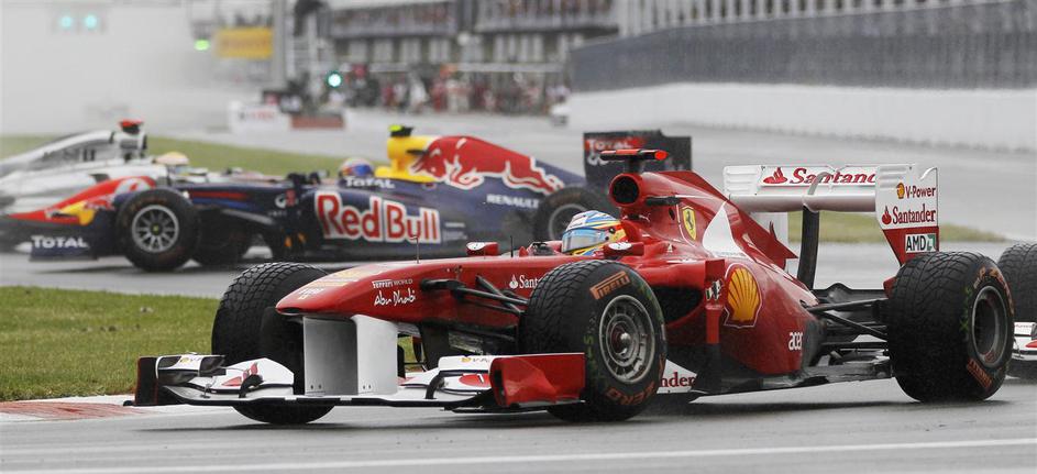 Sebastian Vettel (Red Bull) je pred prekinitvijo in postanki vodil pred Fernando Sebastian Vettel (Red Bull) je pred prekinitvijo in postanki vodil pred Fernandom Alonsom in Felipejem Masso (oba Ferrari). Žurnal24 Sebastian Vettel (Red Bull) je pred prekinitvijo in postanki vodil pred Fernando