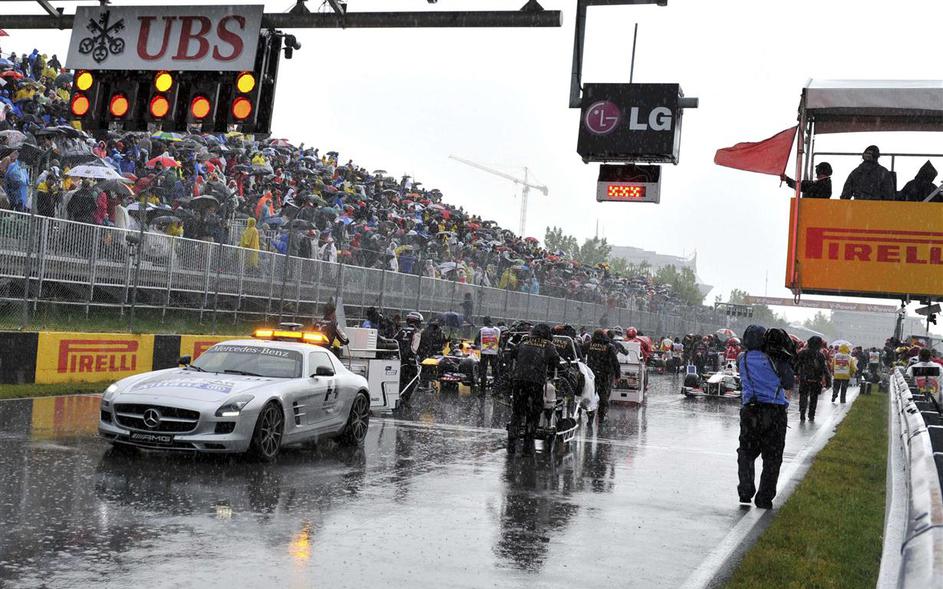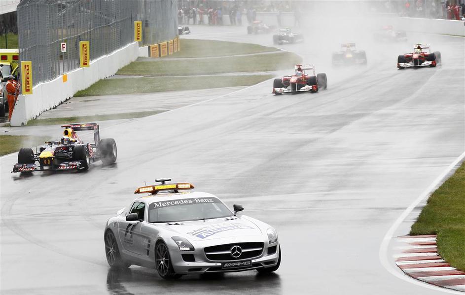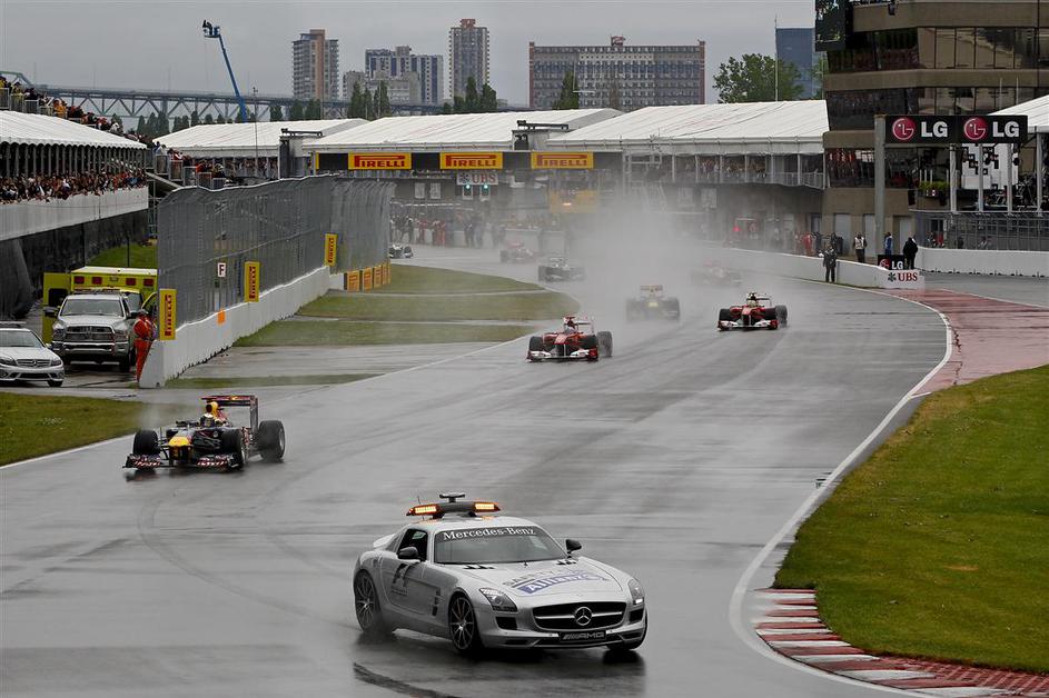 VN Kanade se je zaradi stoječe vode na stezi začela za varnostnim avtomobilom. Žurnal24