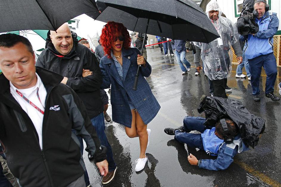 Rihanna Dež pa ni zmotil Rihanne, ki se je smukala po startni vrsti! Žurnal24 Rihanna