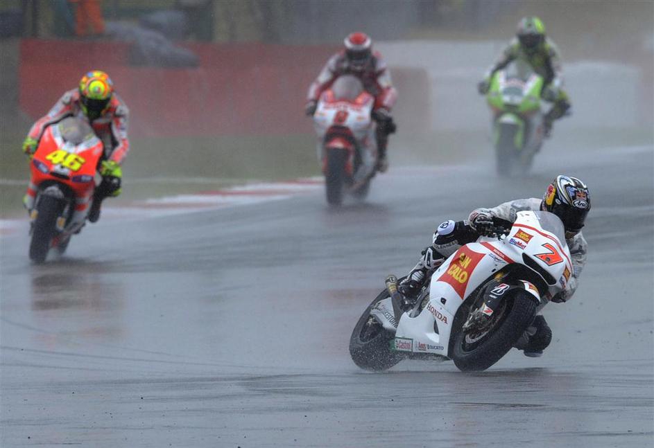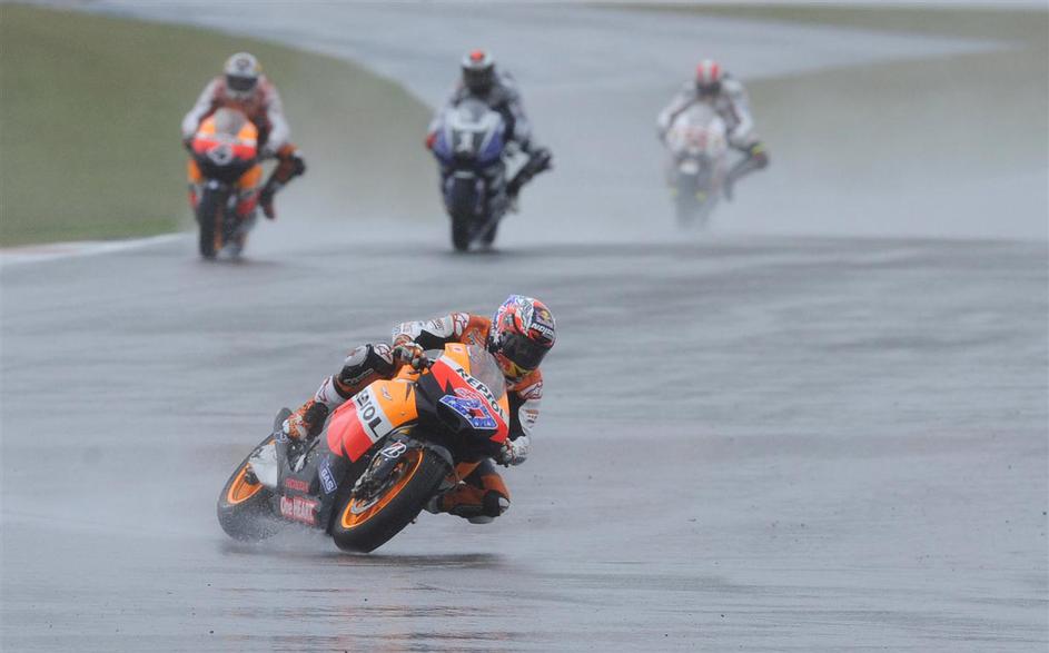 Casey Stoner in Andrea Dovizioso (Honda) ter Marco Simocelli (Honda) in Jorge Lorenzo (Yamaha)