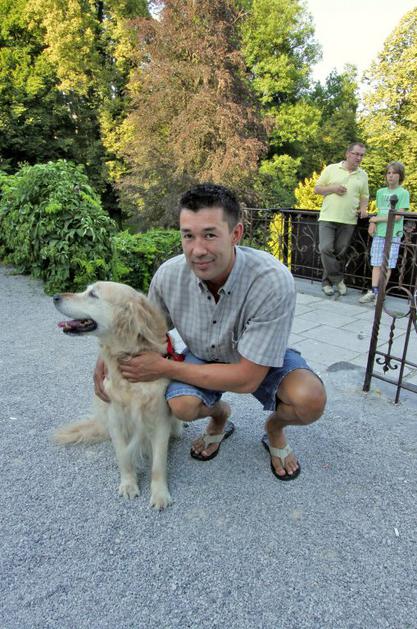 Uroš SmolejIgralec Uroš Smolej s svojo Nežko, ki ji je sprva hotel dati ime Oprah. "O tem imenu sem razmišljal zato, ker je temna in zgubana," je v smehu razložil Uroš. Benjamin Kovač