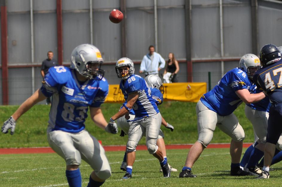 In zdaj še utrinki s finale tekme med SIlverhawks in Thunderji. Touchdownov ni bilo toliko, kot je bilo udarcev in prave obrambe.