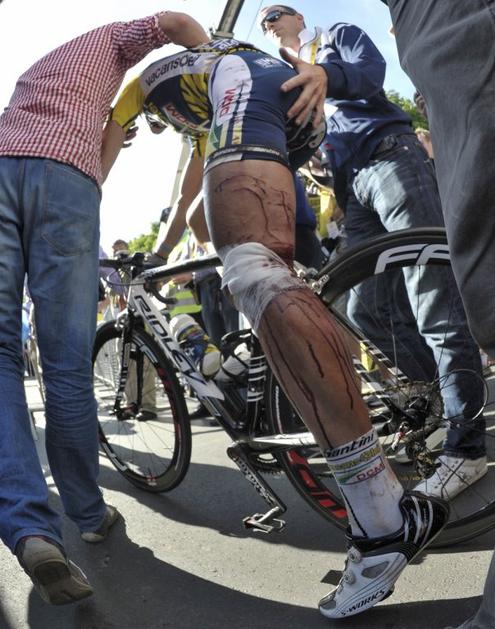 Kljub hudemu padcu je zbral dovolj moči in tudi prišel do cilja devete etape.