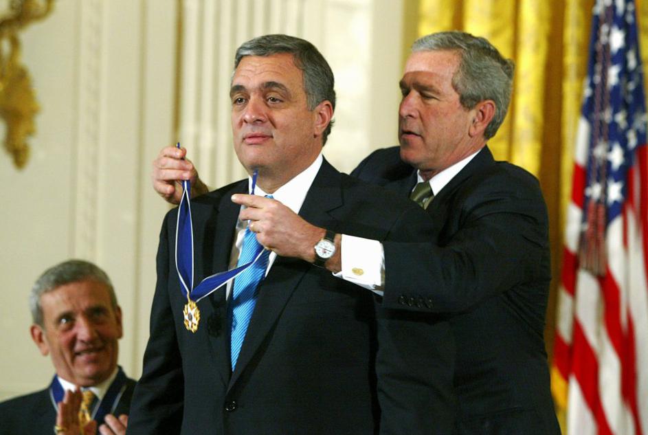 George Bush med odlikovanjem šefa CIA Georga Tenneta leta 2004.