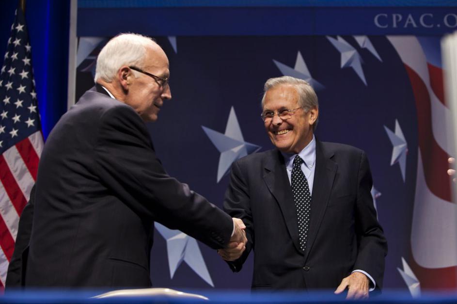Dick Cheney in Donald Rumsfeld februarja letos
