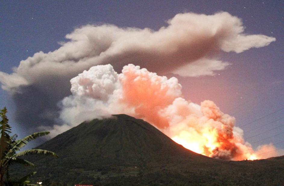 Vulkan v Indoneziji Začel je bruhati pepel, lavo in kamenje, na varnejša mesta se je zateklo šest tisoč ljudi. Še 27 tisoč ljudi, ki živijo v neposredni okolici kraterja, nameravajo evakuirati. Reuters Vulkan v Indoneziji