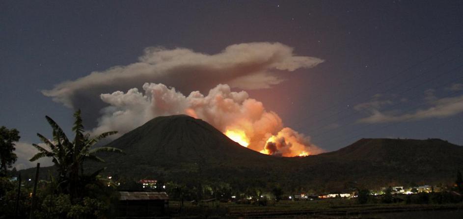 Vulkan v Indoneziji Vulkan Lokon, ki leži na indonezijskem otoku Sulavezi, je močneje izbruhnil že trikrat. Reuters Vulkan v Indoneziji
