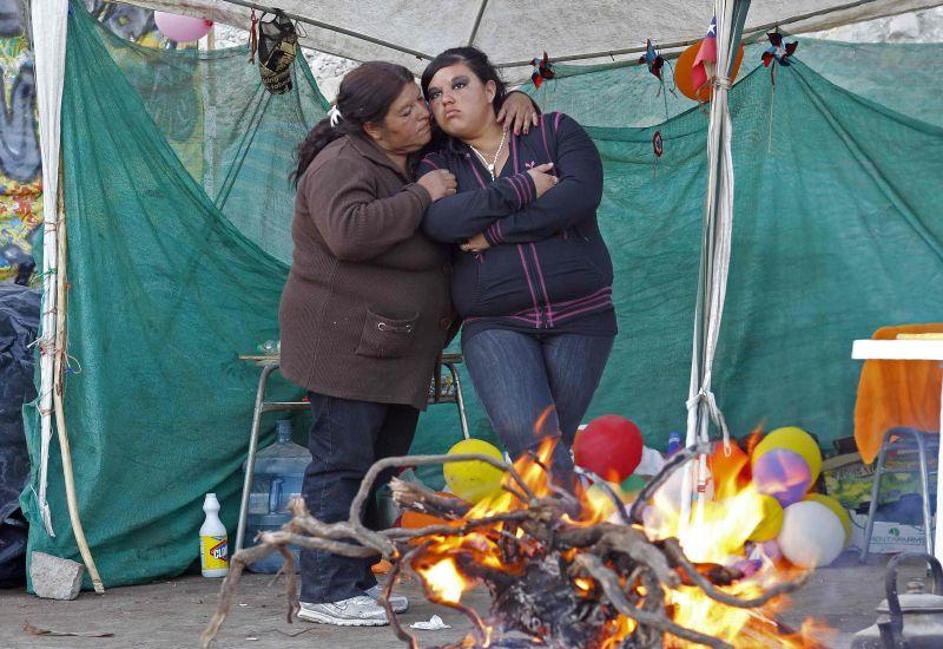 Družine ujetih rudarjev so pred rudnikom postavile svoj tabor.