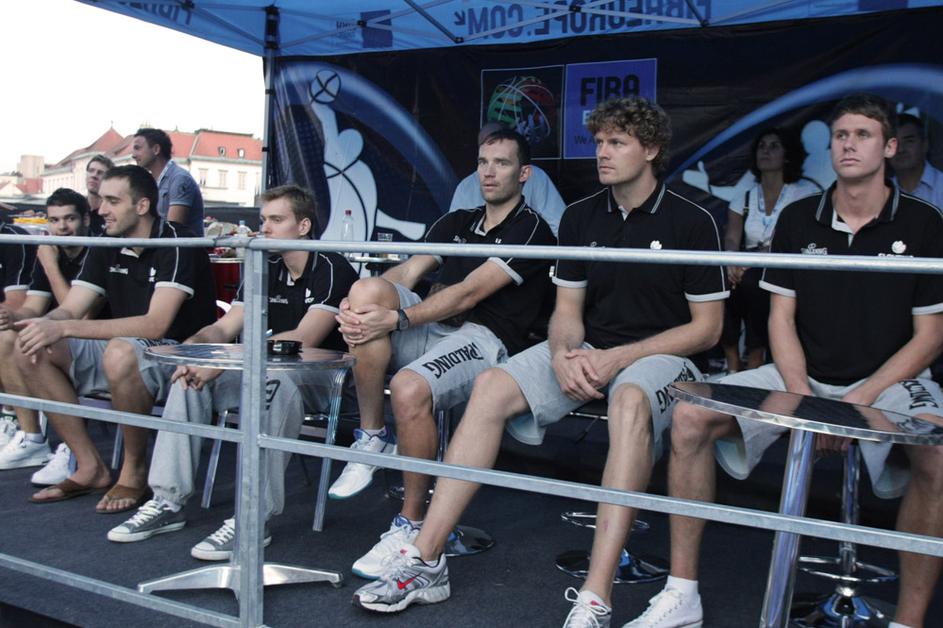 Več kot 1.500-glava množica je na Prešernovem trgu pozdravila slovensko košarkarsko reprezentanco.