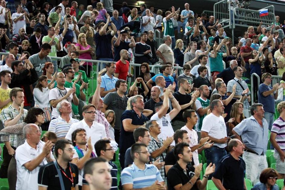 Navijači so lepo napolnili dvorano v Stožicah.