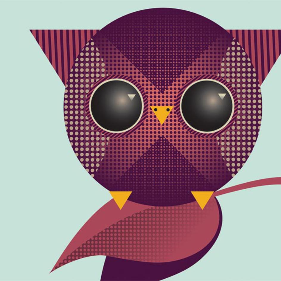 Owl with headphones, oblikovanje Fabian.