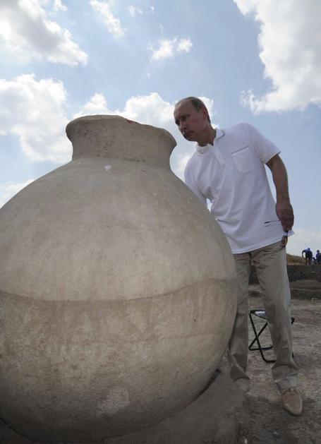 Putin, amforaAntična Fanagorija je stara okoli 2500 let, približno tretjina pa se je nahaja pod vodo. Mestu pravijo tudi "Ruska Atlantida". Reuters