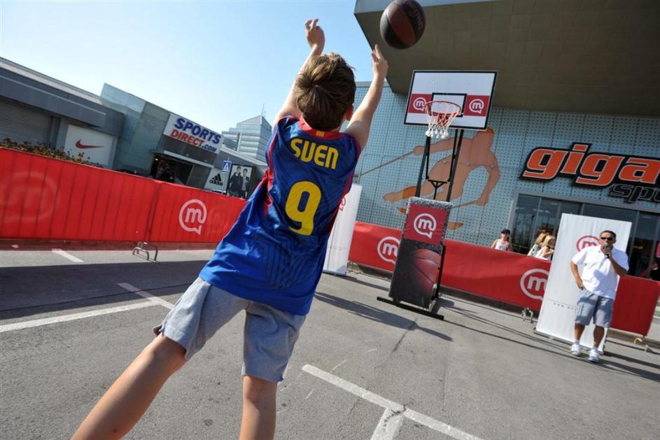 Navijač meče na koš.