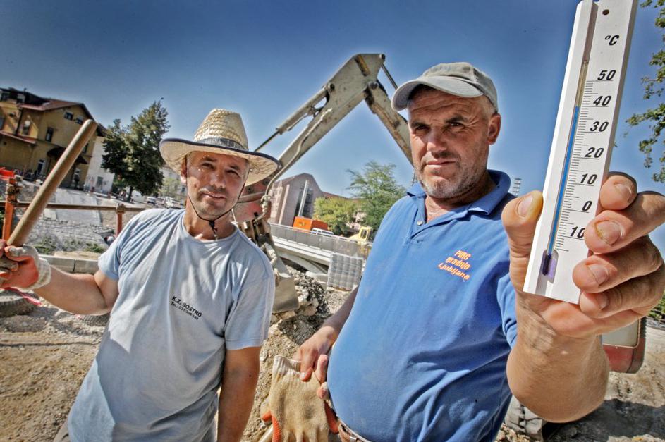 Vroče je bilo tudi pred ljubljanskim kliničnim centrom, kjer je termometer po petih minutah na soncu pokazal 43 stopinj Celzija.