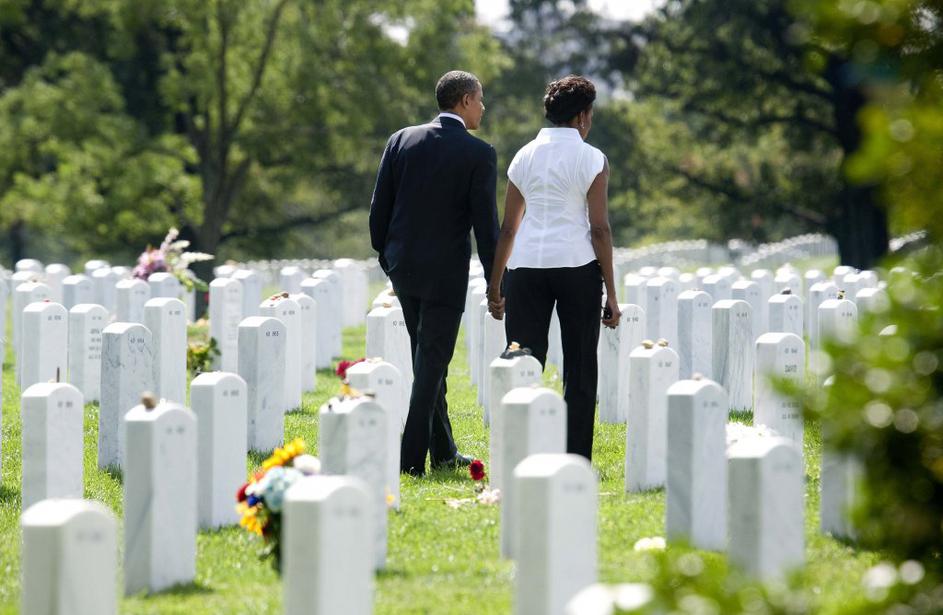 Obama je z ženo danes obiskal pokopališče.