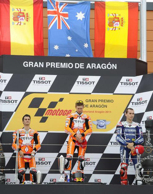 Casey Stoner VN Aragonije dirkaStoner ima v skupnem seštevku 44 točk prednosti pred Lorenzom in je vse bližje svojemu drugemu naslovu svetovnega prvaka. Reuters