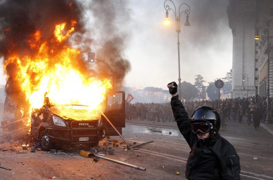 Protestniki v Rimu zbezljali