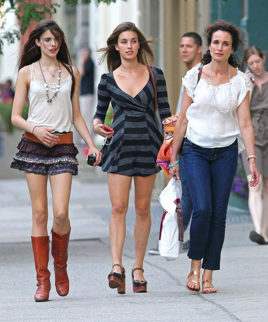 Margaret Qualley, Andie MacDowell, RaineyKo je 16-letna Margaret Qualley pred kratkim nastopila na newyorškem tednu mode, je bila njena največja občudovalka v prvi vrsti mama Andie MacDowell. Po mnenju 21-letne Rainey, Margaretine starejše sestre, pa sta mami lahko hvaležni za dobre gene in normalno vzgojo. Flynet
