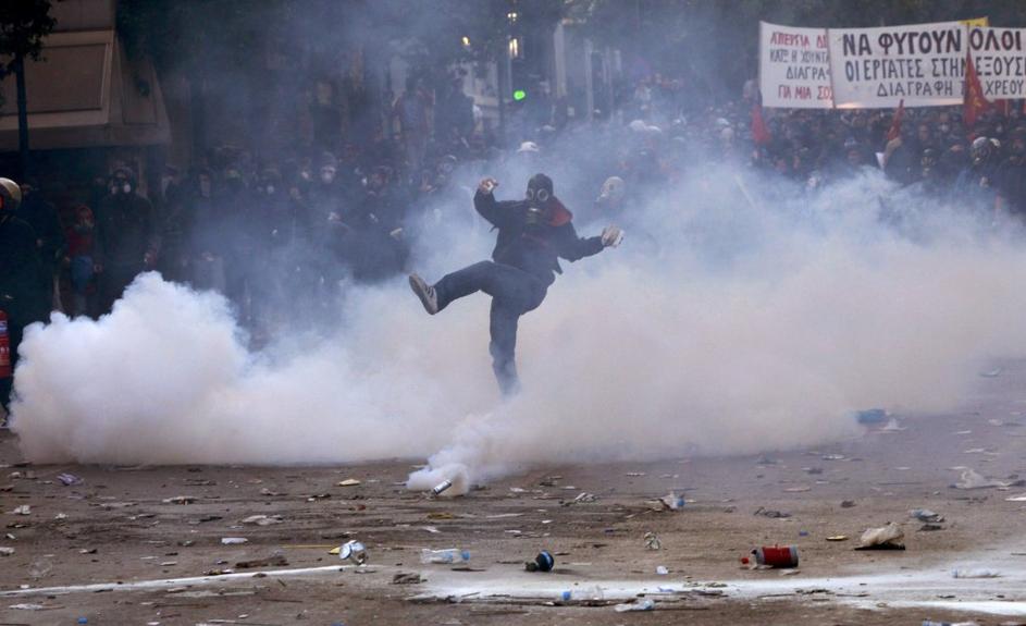 Spopadli so se protestniki in izgredniki.