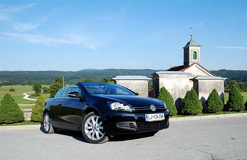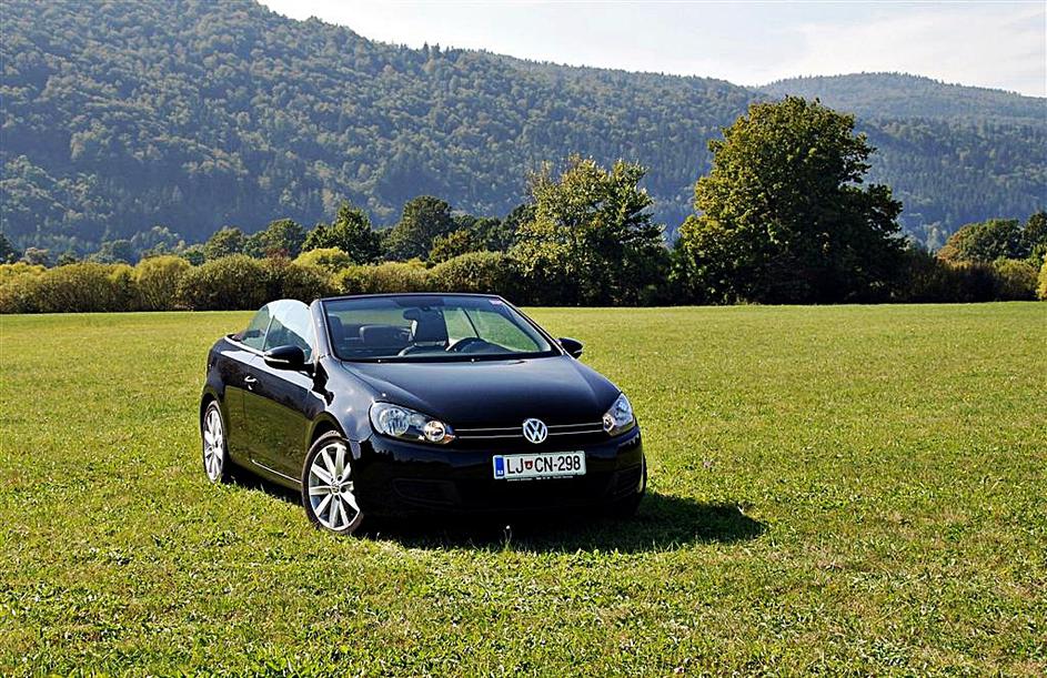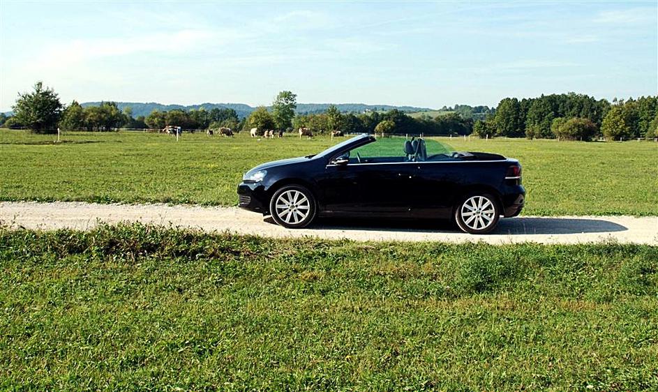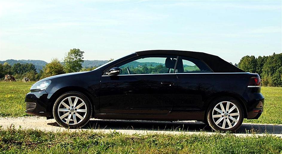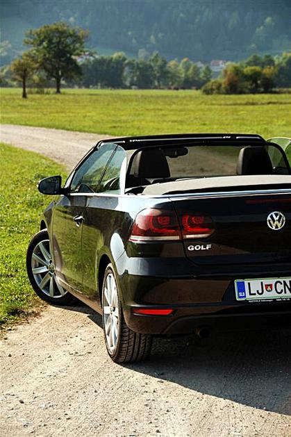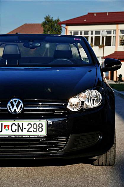 Golf cabriolet brez varnostnega loka je videti seksapilno. Zaradi LED žarometov še bolj izstopa.