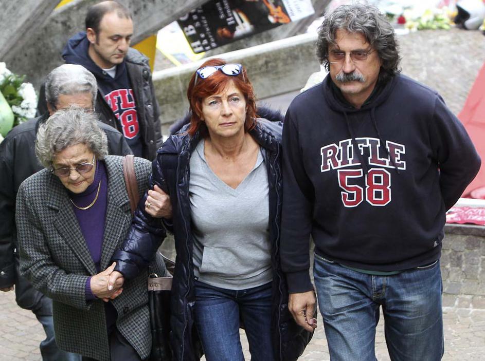 mama oče Paolo Rossella Simoncelli pogrebMama Rossella in oče Paolo ob prihodu. Paolo se je večkrat zahvalil za lepe besede in priznal, da bo najhujše šele po pogrebu, ko bodo ostali sami ... Reuters