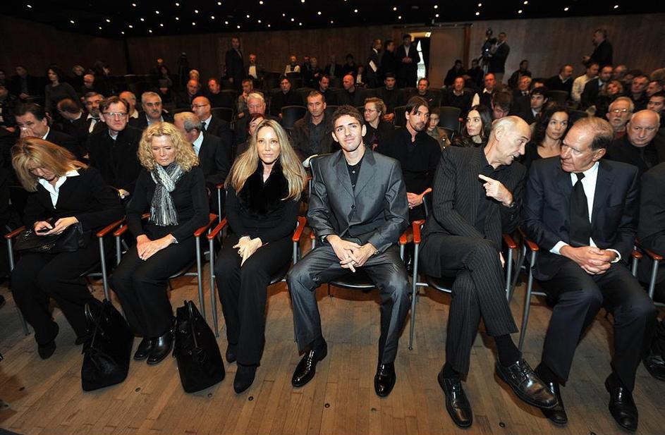 Vdova Jasenka Puc (z očali) in sin Borut (desno) na pogrebu.