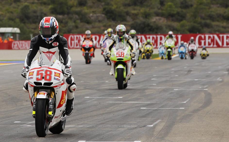 Vsi dirkači vseh treh kategorij so pod vodstvom Simoncelijevega dobrega prijatelja Kevina Schwantza, ki je peljal njegov motor s številko 58, odpeljali častni krog.