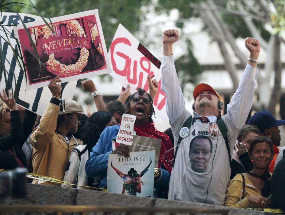 Oboževalci kralja popa so pred sodiščem z navdušenjem pričakali razsodbo porote.