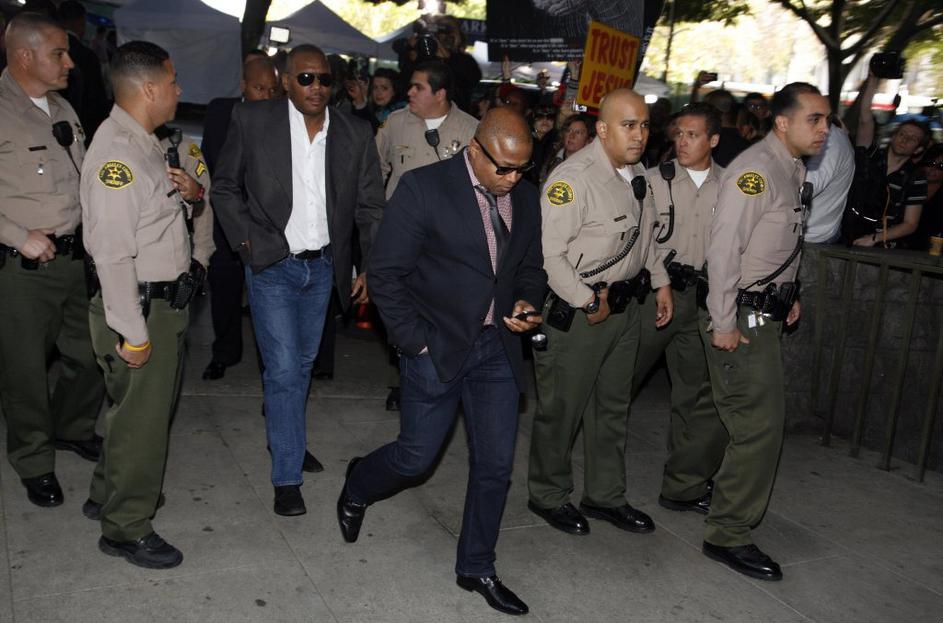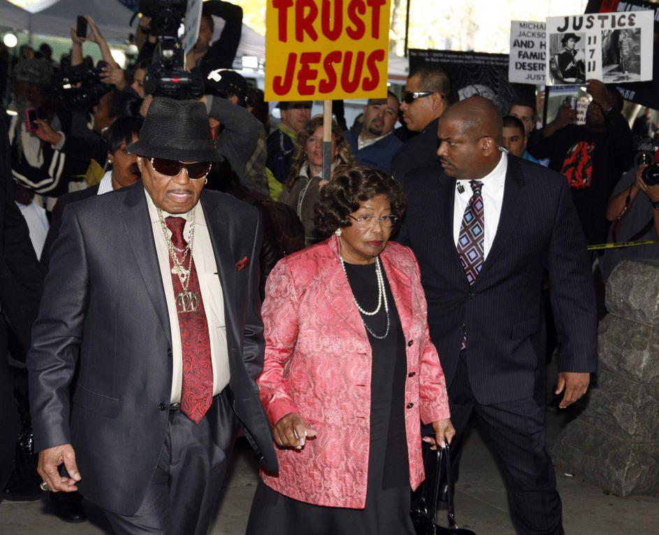 Izreku razsodbe porote so prisostvovali tudi člani Jacksonove družine: Joe in Katherine, oče in mati Michaela Jacksona ...