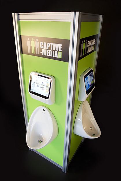 Oglaševalsko-igralski vmesnik nad pisoarjem