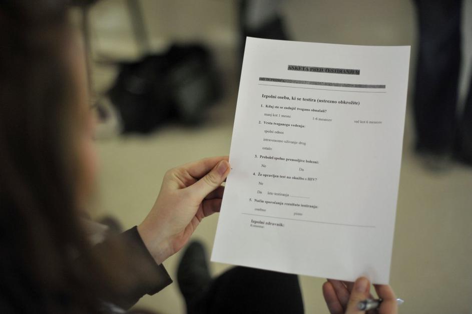 Testiranje AidsNa Infekcijski kliniki so se pred svetovnim dnevom boja proti aidsu testirali na HIV testirali predstavniki Študentske organizacije Univerze v Ljubljani: želijo spodbuditi tudi ostale. Anže Petkovšek