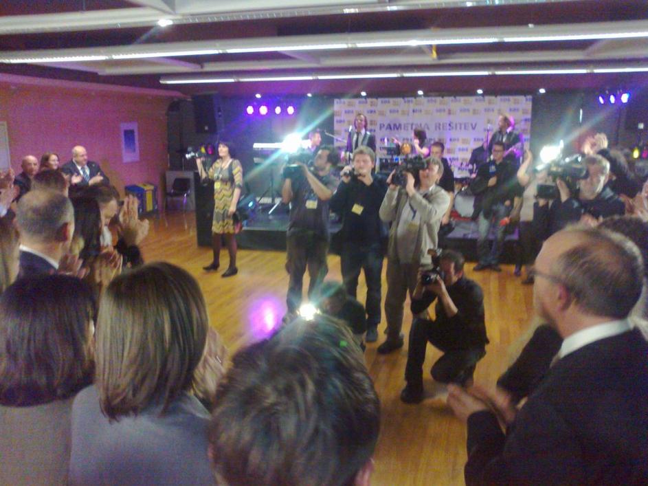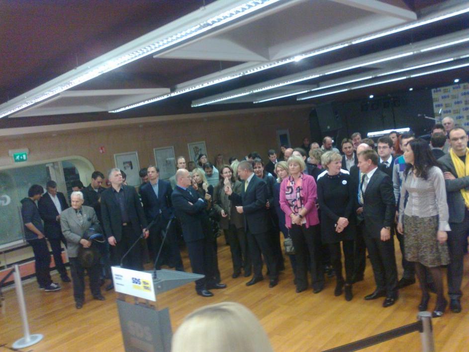 Volilni štab SDS po razglasitvi rezultatov.