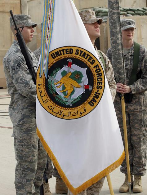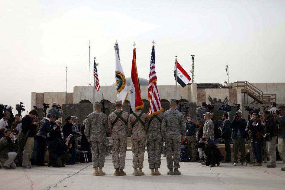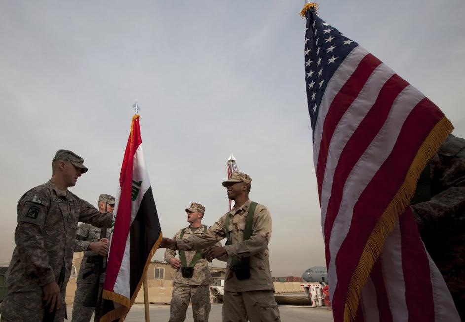 Menjava zastav v Iraku ob odhodu Američanov.