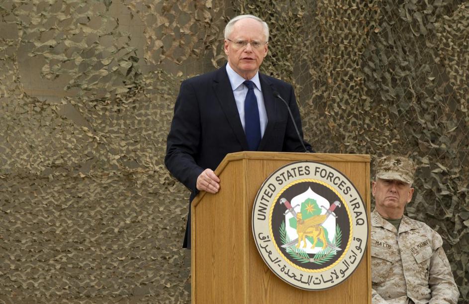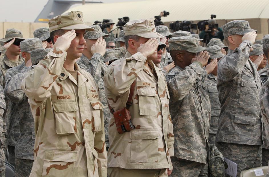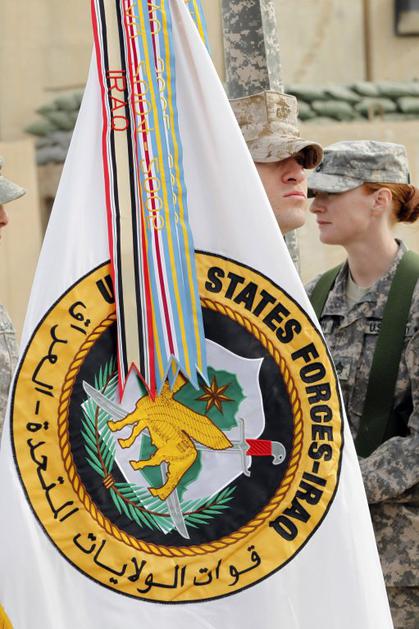 Na ceremoniji ob spustu ameriške zastave v Iraku.