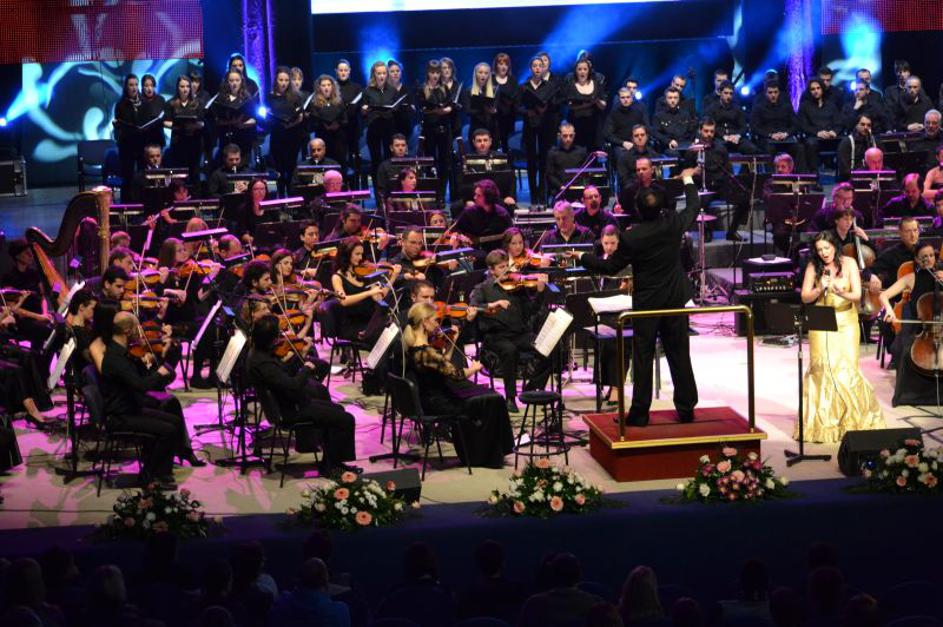 Alenka z glasbenimi kolegi, ki so nastopili na Toševem koncertu.