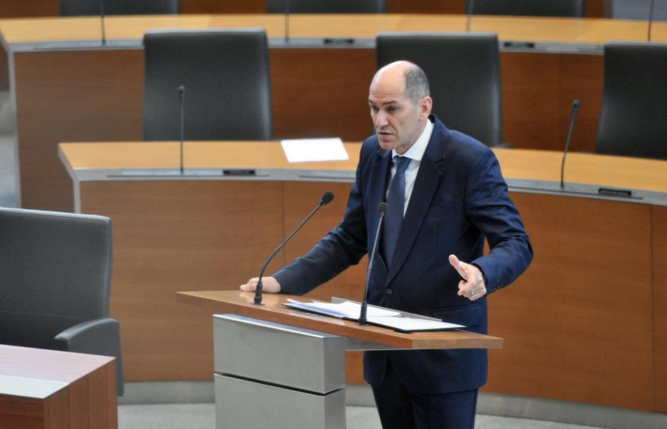 Janša med uvodno predstavitvijo vlade v parlamentu.
