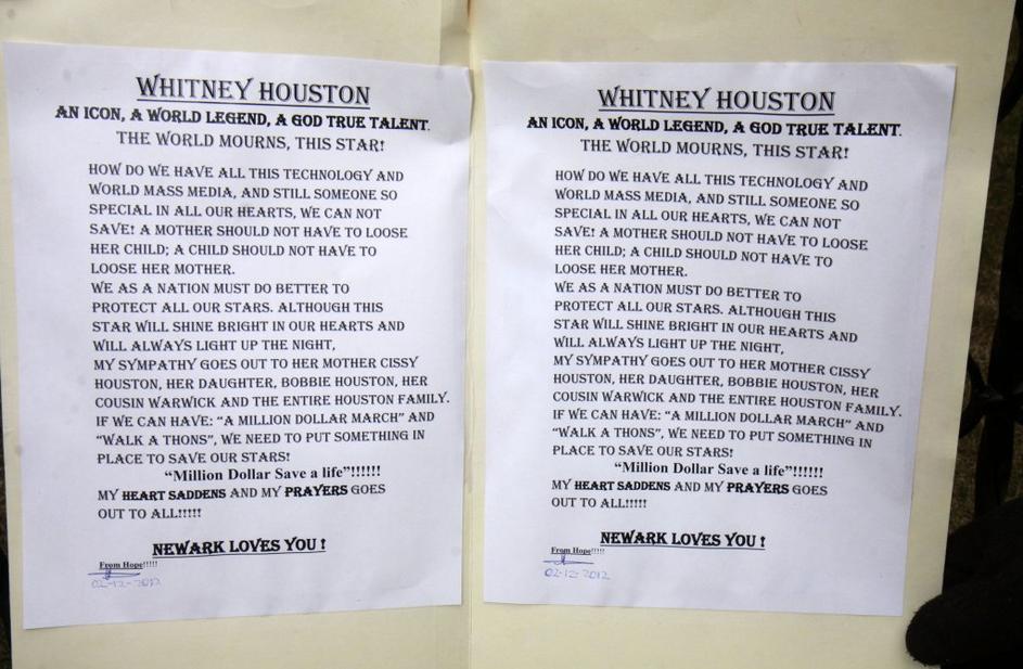 Številni oboževalci so se Whitneyjinemu spominu poklonili tudi pred baptistično cerkvijo v njenem rodnem kraju Newark.