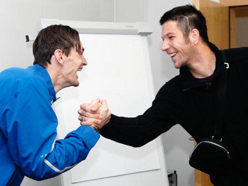 Na treningu pred tekmo na stadionu Artemio Franchi je bil dobro razpoložen.