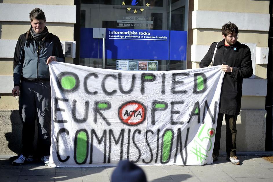 Protest proti Acti pred stavbo Evropske komisije v Ljubljani